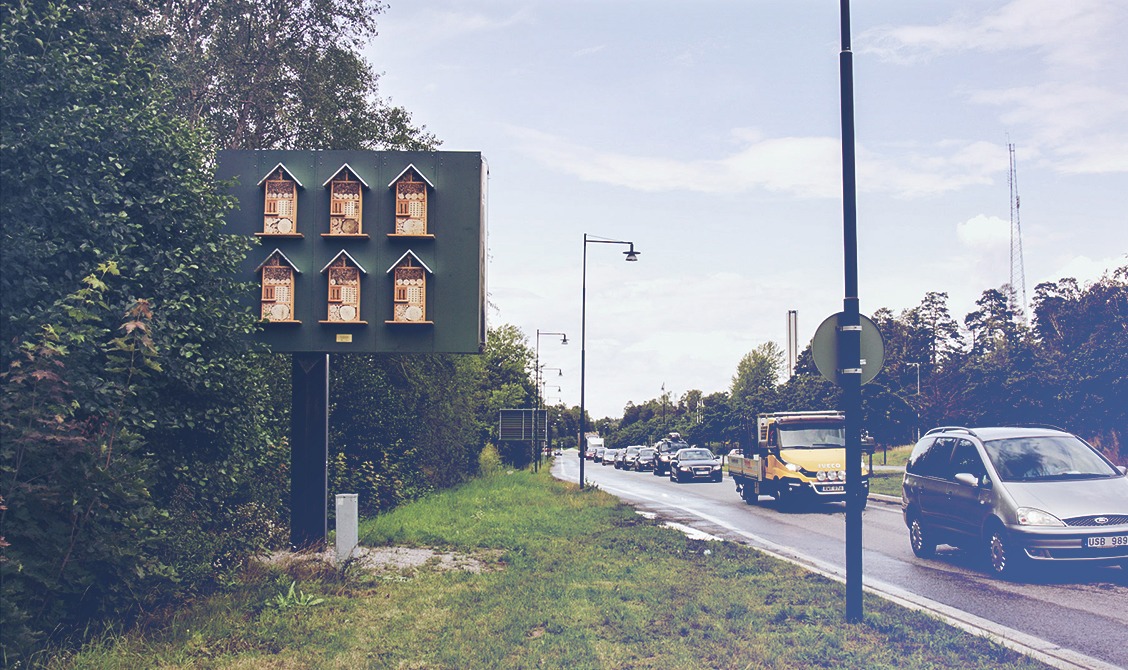 It is estimated that 30% of Sweden’s wild bees are threatened. A major problem is their lack of places to live. Consequently, several of McDonald’s restaurants have swapped their standard billboards for ones with built-in bee hotels, allowing wild bees and other insects to crawl in and rest.
